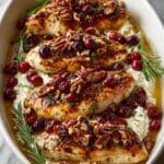 This Honey Cranberry Chicken Bake with Ricotta Cheese is a delightful combination of tender chicken breasts, tangy cranberries, and creamy ricotta cheese, enhanced with the sweetness of honey and the depth of balsamic vinegar. The dish is finished with a crunchy topping of toasted pecans and fresh parsley, creating a perfect balance of flavors and textures that’s easy to prepare for a comforting weeknight dinner.