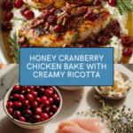 This Honey Cranberry Chicken Bake with Ricotta Cheese is a perfect balance of sweet and savory flavors. Tender chicken breasts are topped with fresh cranberries, creamy ricotta, and a touch of honey for a comforting, elegant dish that’s easy to prepare.