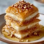 These Baklava Cheesecake Phyllo Cookies combine the rich creaminess of cheesecake with the crisp, flaky layers of phyllo dough. Finished with a fragrant honey drizzle, they make a perfect bite-sized treat that’s both elegant and irresistible.