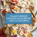A hearty and flavorful Italian Grinder Chicken Salad combining shredded rotisserie chicken with a variety of Italian deli meats, cheeses, and vibrant vegetables, all tossed in a tangy, oregano-spiked homemade dressing. Perfect as a protein-packed salad, sandwich filling, or served alongside crackers or veggies for a quick and satisfying meal.