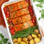 PrintMaple Glazed Sheet Pan Salmon with Roasted Potatoes and Vegetables Recipe