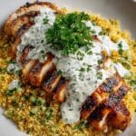 Mediterranean Bliss: Greek Chicken with Tzatziki and Couscous is a vibrant and comforting dish that balances zesty, herb-infused chicken with cool, creamy tzatziki and light, fluffy couscous. Perfectly suited for a weeknight dinner or a casual gathering, it brings fresh Mediterranean flavors straight to your table.