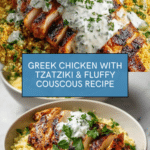 Keywords: Greek chicken, tzatziki sauce, couscous, Mediterranean recipe, lemon oregano chicken, healthy chicken dish, homemade tzatziki, easy chicken dinner