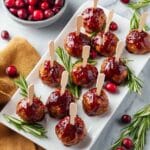 - Glaze and Serve: Once meatballs are done, toss them gently in the warm cranberry glaze to coat evenly. Skewer each meatball with festive picks for easy serving and enjoy warm with extra glaze on the side.