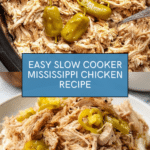 Keywords: Mississippi Chicken, Slow Cooker Chicken, Shredded Chicken, Pepperoncini Chicken, Easy Chicken Dinner, Ranch Chicken