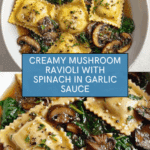 Keywords: Mushroom ravioli, spinach, creamy sauce, Italian pasta, vegetarian dinner, mushroom sauce, homemade ravioli, easy pasta recipe