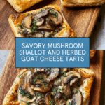 These Mushroom Shallot and Herbed Goat Cheese Tarts offer a delicious combination of flaky puff pastry, savory mushroom filling, and creamy goat cheese. Perfect as an appetizer or light meal, they are easy to prepare and impressively flavorful.