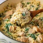 One Pan Spinach Artichoke Chicken Orzo Recipe