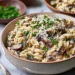 This One-Pot Creamy Mushroom Orzo is a comforting and easy-to-make meal combining tender orzo pasta with sautéed mushrooms, garlic, and onions, finished with a rich, creamy blend of heavy cream and Parmesan cheese. Perfect for a quick weeknight dinner, this flavorful dish is garnished with fresh parsley for a touch of freshness.
