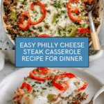 This Philly Cheese Steak Casserole captures the classic flavors of a beloved sandwich in an easy, bake-and-serve dish. Packed with seasoned ground beef, bell peppers, onions, and melty Provolone cheese, it’s a comforting meal perfect for busy weeknights.