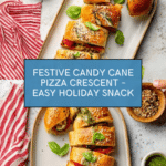 Keywords: Pizza crescent dough, Candy cane pizza, Holiday appetizer, Pepperoni pizza, Festive snacks, Pizza shapes, Easy pizza recipe