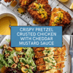 Keywords: pretzel crusted chicken, cheddar mustard sauce, crispy chicken, baked chicken, cheesy sauce, easy dinner, flavorful chicken breast