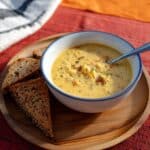 Store leftover soup in an airtight container in the refrigerator for up to 4 days. Reheat gently on the stove or in a microwave, adding a splash of water or broth to loosen the texture if needed. This soup also freezes well for up to 3 months; thaw overnight in the fridge before reheating.
