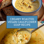Keywords: roasted cauliflower soup, vegan soup, dairy-free soup, healthy soup, creamy cauliflower soup, plant-based soup, gluten free, nutritious soup
