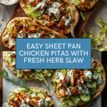 These Sheet Pan Chicken Pitas with Fresh Herb Ranch Slaw are a quick, flavorful, and wholesome meal featuring tender spiced chicken baked to perfection and topped with a vibrant, herbaceous Greek yogurt slaw. Perfect for a healthy weeknight dinner, these pitas combine a delightful mix of smoky spices, fresh herbs, and creamy dressing for a satisfying Mediterranean-inspired dish.