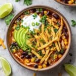 - Serve and Garnish: Ladle the soup into bowls and serve topped with crunchy tortilla strips or broken tortilla chips, sliced avocado, shredded cheese, fresh cilantro, lime slices, green onions, jalapeños, and a dollop of sour cream for extra flavor and texture.