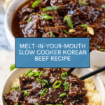 Keywords: slow cooker Korean beef, Korean beef recipe, slow cooker dinner, Korean BBQ beef, easy Korean beef, beef short ribs, slow cooked beef, Korean sauce