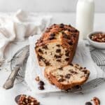 Keywords: banana bread, sourdough discard, chocolate chip banana bread, easy banana bread, quick bread, chocolate chips, pecan banana bread