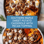 Keywords: sweet potato casserole, southern casserole, maple sweet potatoes, holiday side dish, pecan topping, marshmallow casserole