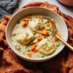 Keywords: pierogi soup, southern style soup, creamy soup, chicken pierogi, vegetable soup, hearty soup