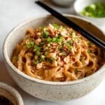 Serve the noodles topped with crushed peanuts, sliced scallions, and additional red pepper flakes if desired. This dish pairs well with steamed or roasted vegetables and your choice of protein such as chicken or tofu.