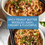 Keywords: peanut butter noodles, spicy noodles, Asian peanut sauce, brown rice noodles, vegetarian noodles, quick dinner, easy noodles recipe, spicy peanut noodles