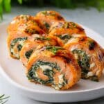 These Spinach & Feta Stuffed Salmon Pinwheels are a delicious and elegant way to enjoy salmon with a flavorful spinach and cheese filling. Perfect for a weeknight dinner or a special occasion, they combine tender salmon with creamy feta and bright lemon notes.