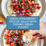 A refreshing and vibrant twist on classic pico de gallo, this Strawberry Pico de Gallo with Greek Yogurt combines the sweetness of fresh strawberries with the zesty flavors of lime, jalapeño, and cilantro, served atop creamy Greek yogurt. Perfect as a light appetizer or snack, this recipe offers a delightful balance of sweet, spicy, and tangy flavors.