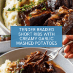 Keywords: braised short ribs, garlic mashed potatoes, beef ribs, comfort food, slow-cooked beef, oven braised ribs, creamy mashed potatoes