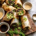 Thai Basil Beef Rolls are a fresh and flavorful appetizer featuring ground beef cooked with aromatic garlic, shallots, and traditional Thai seasonings, wrapped in delicate rice paper with fresh herbs and crisp vegetables. These rolls combine savory, tangy, and spicy notes balanced by aromatic Thai basil, making them a perfect light meal or party appetizer.