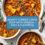 A hearty and flavorful lentil soup featuring red lentils simmered with aromatic spices, fresh vegetables, and spinach. This comforting dish is easy to prepare on the stovetop and makes for a nutritious, protein-packed meal perfect for any day.