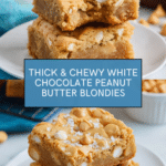 Keywords: white chocolate blondies, peanut butter blondies, chewy blondies, white chocolate peanut butter dessert, easy blondie recipe