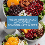 This Winter Salad is a refreshing and vibrant mix of seasonal ingredients that brighten up any meal. With sweet citrus, tangy pomegranate, creamy feta, and crunchy candied pecans, it’s a perfect balance of flavors and textures.